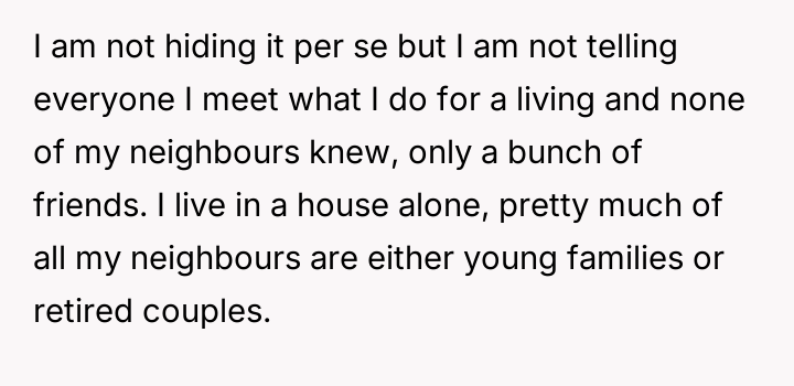 As renowned researcher Dr. Brené Brown explains, “Boundaries are the distance at which I can love you and me simultaneously.” In this situation, the OP maintained a professional boundary by not broadcasting her specific work, which was then aggressively violated by the neighbors, first through surveillance and then through moralistic harassment initiated by Dalia based on perceived knowledge of the OP’s career.