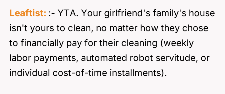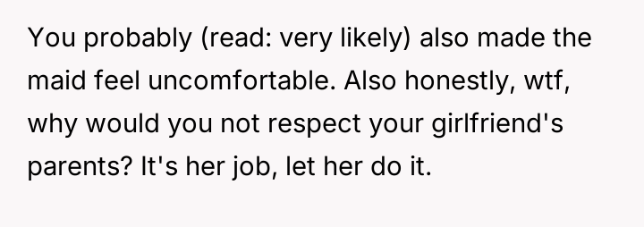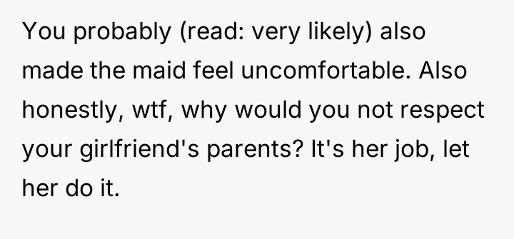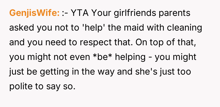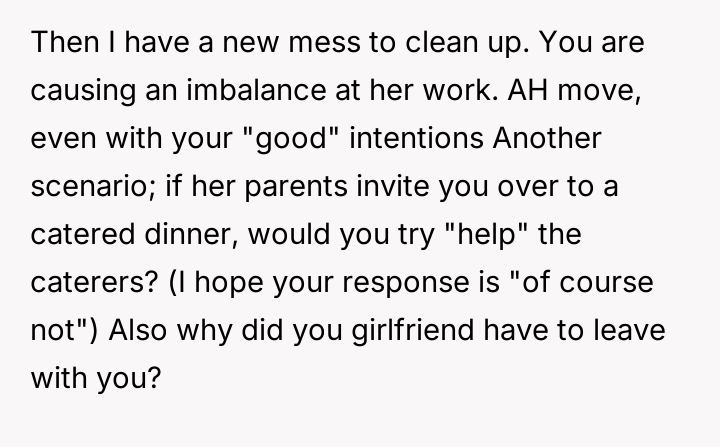 AITA for helping my girlfriend’s maid clean?