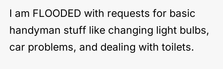 In a quiet neighborhood where he stands as the sole man among a sea of women, one husband finds himself unwittingly cast as the local handyman. What began as occasional favors has blossomed into a relentless stream of requests, each ping and ring a reminder of the unspoken expectation placed upon him by a community that leans heavily on his willingness to help.