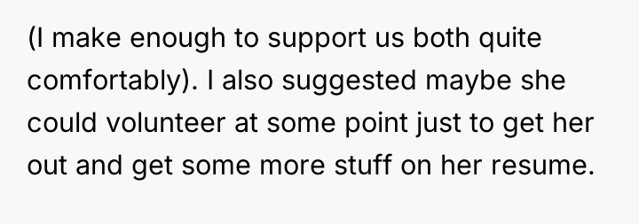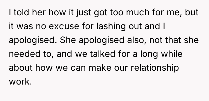 The original poster (OP) acknowledged that their harsh language, specifically calling their girlfriend lazy, was wrong and a result of personal frustration. The central conflict revolved around the OP's expectations regarding household contribution and job searching versus the girlfriend's struggles with depression, which limited her capacity to meet those expectations. They have since moved toward a compromise focused on mutual support, reduced pressure on job hunting, and establishing small, manageable daily routines.