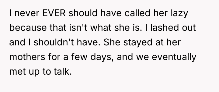 In the quiet aftermath of a harsh confrontation, a man grapples with the weight of his own harsh words, realizing the pain they caused the woman he loves. His regret is deep and sincere, as he acknowledges that labeling her as lazy was a devastating mistake, born from his own overwhelmed heart rather than truth.