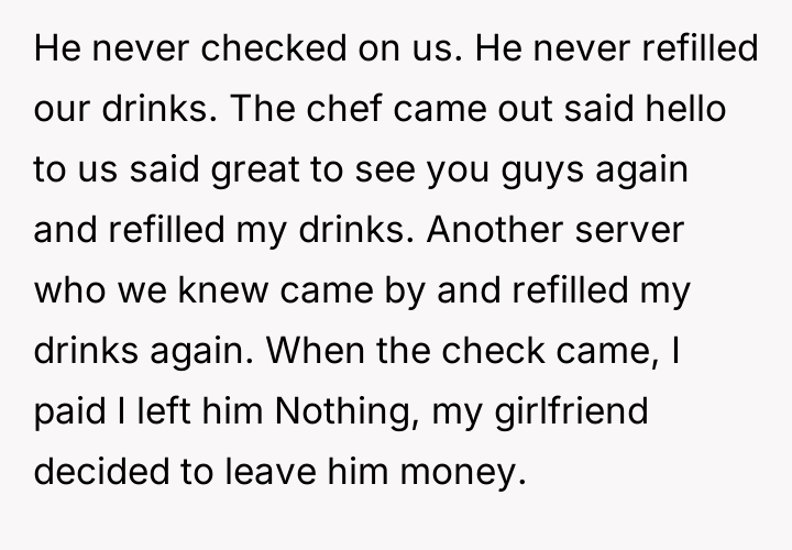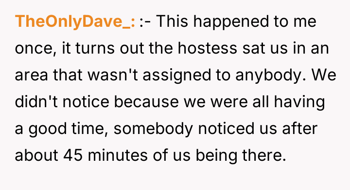 Staff forgot about us, I didn’t tip