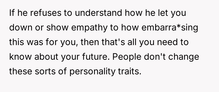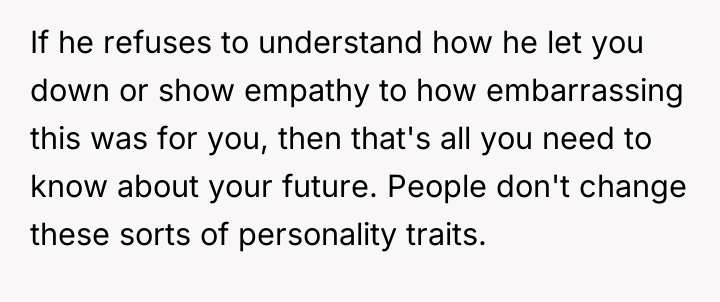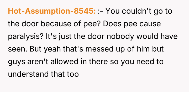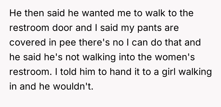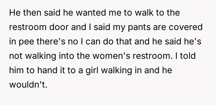 According to Dr. Hayden Gray, a specialist in relational dynamics, "Basic partnership requires a flexible framework where immediate, practical needs of a loved one, especially during distress, override minor personal inconveniences or strictly defined boundaries." OP's situation involved a medically related accident (stress incontinence) occurring during a high-pressure event (an exam). Her request for assistance was urgent and time-sensitive, centered on mitigating immediate embarrassment and discomfort. The boyfriend's behavior demonstrates a prioritization of his own comfort (not wanting to enter the women's restroom or perhaps feeling put out) over meeting his partner's critical, immediate need. While the request to hand the clothes to another female student was a reasonable accommodation on OP's part, the boyfriend’s insistence on his original conditions, even after receiving payment, suggests a lack of emotional attunement to his partner's crisis. The core issue here is the breakdown of expected supportive behavior within an intimate relationship. A partner's role often includes stepping in when practical solutions are difficult for the other party. In this case, the boyfriend created unnecessary hurdles. A professional recommendation would be for OP to communicate clearly that while she understands boundaries, his refusal to facilitate a simple solution when she was physically compromised constituted a significant lapse in partnership. Moving forward, both parties should discuss clear expectations for support during future emergencies.