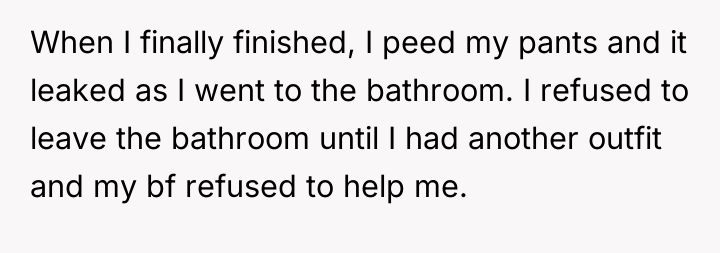 'Peed my pants. My bf wouldn’t help me'