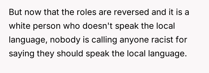 Is it reasonable for expatriates who reside long-term in a foreign country to be held accountable for making a significant effort to learn the local language, or does the social responsibility lie with the local community or other, more proficient expatriates to accommodate their communication needs?