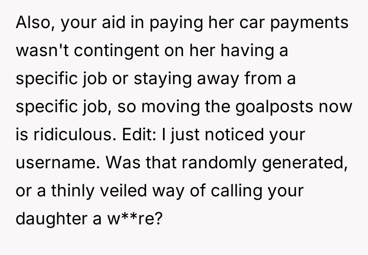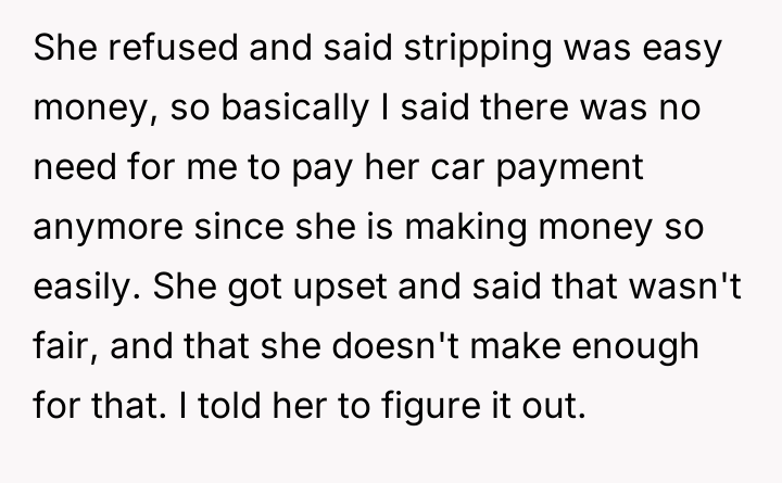AITA for refusing to help my daughter with her car payment because she is a stripper?