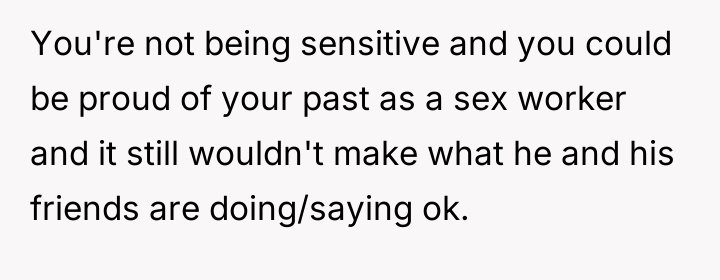 As renowned relationship expert Dr. John Gottman explains, “The single most important thing we can do to have a happy relationship is to pay attention to each other.” In this scenario, Martin’s attention was directed toward validating his friend Antonio’s offensive joke rather than validating his fiancée’s feelings or standing up for her against public disrespect. This lapse in attention and support signals a significant failure in emotional partnership. The OP’s past employment is a sensitive topic, and while her fiancé claims acceptance, his public laughter and joking counteroffer demonstrate a severe lack of respect and boundary enforcement in front of his peers. This behavior suggests that Martin prioritizes maintaining superficial social harmony with his friends over protecting his partner’s dignity. When Martin accused the OP of 'overreacting' and needing therapy for being 'too sensitive,' he engaged in classic gaslighting, shifting blame for his own inappropriate behavior onto her emotional response, which further erodes trust. The OP’s decision to leave was an appropriate, albeit drastic, method of enforcing a critical boundary when verbal communication failed in the moment. A constructive approach for the future would involve Martin proactively setting clear boundaries with his friends about acceptable conduct regarding the OP’s history. If Martin continues to dismiss her feelings as 'overreacting,' the core issue is not the past, but the current breakdown of mutual respect and emotional safety within the relationship.