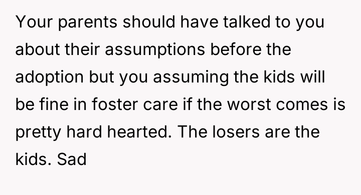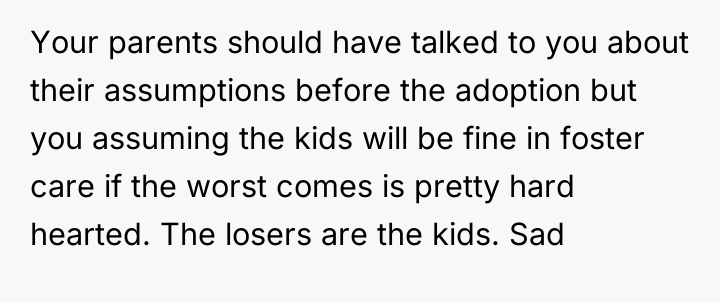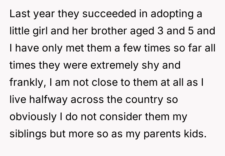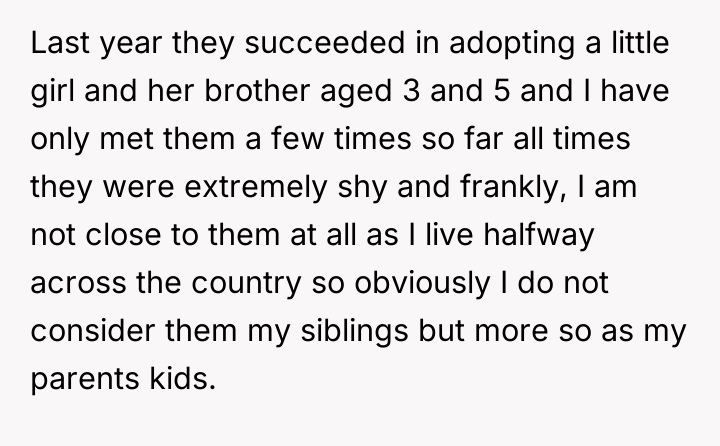 AITA For not considering my parents adopted children as my siblings and not being willing to take them in if something happens to my parents