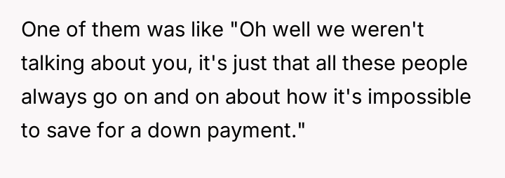 AITA for bluntly telling the people I work with that no, not “everyone in the office” can afford to buy a house?