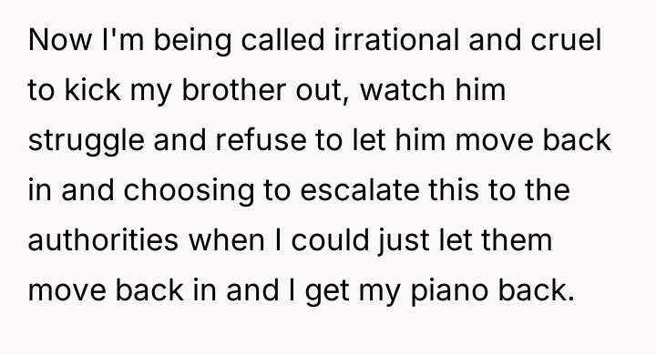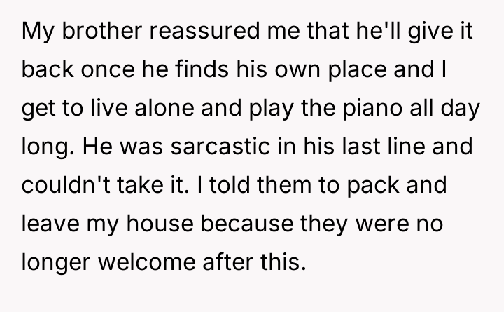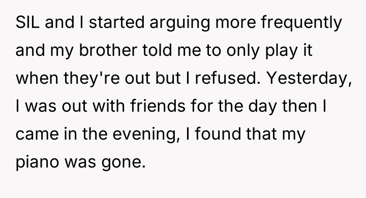 AITA for giving my brother and his wife 2 days to return my piano?