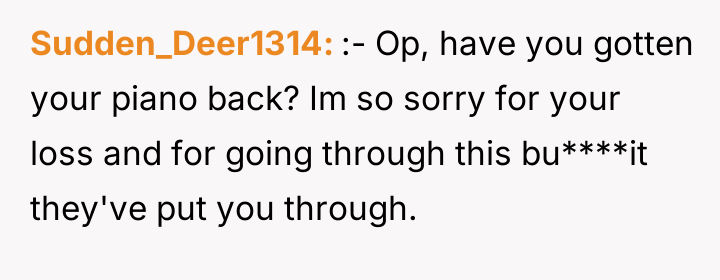Given the non-negotiable removal of personal property and the OP's subsequent demand for their immediate departure, the central question remains: Was the OP's reaction—kicking out family and threatening legal action over the piano—a justified defense of boundaries and property, or was it an excessively harsh response fueled by grief that escalated a solvable domestic conflict?
