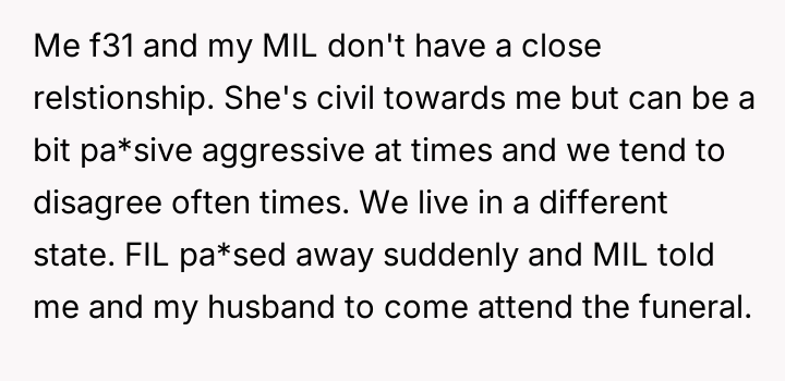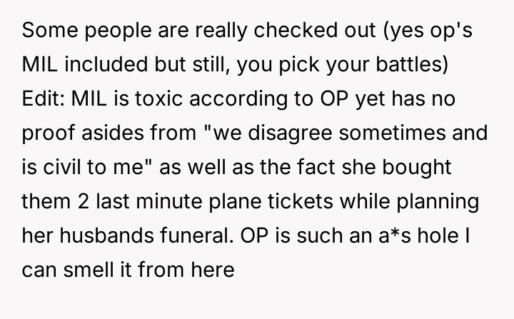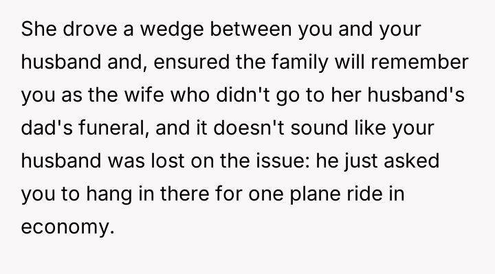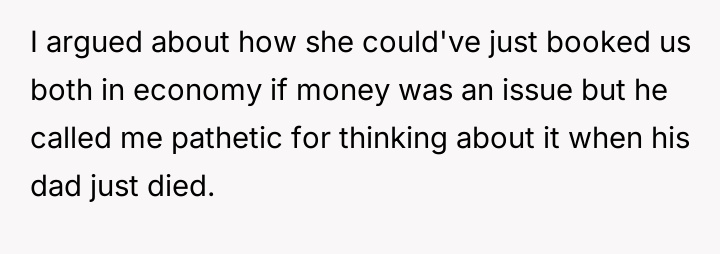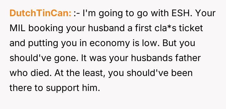 AITA for missing my FIL's funeral after my MIL booked my husband first cla*s but me ecconomy?