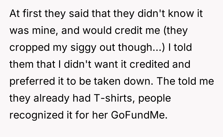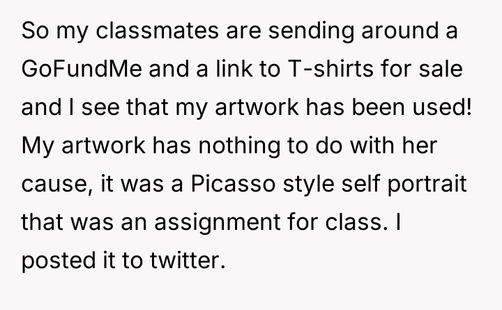 AITA for not letting my classmate use my artwork for her GoFundMe?