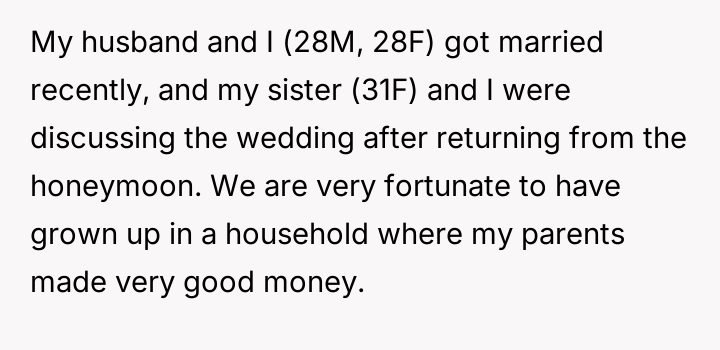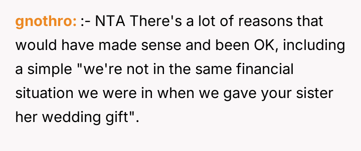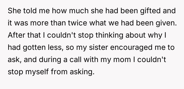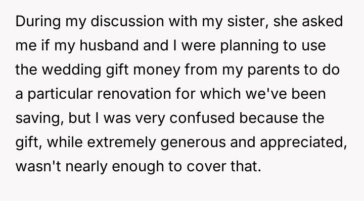 AITA for asking my parents why my wedding gift was significantly smaller than my sister’s?