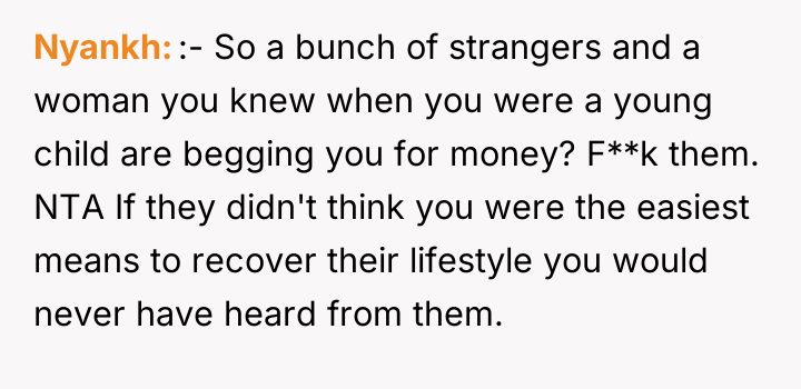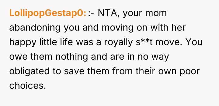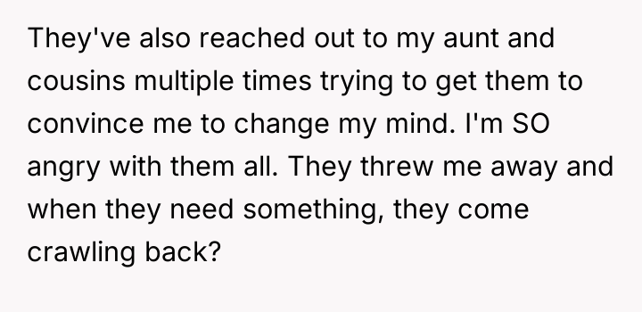Given the history of abandonment and the current aggressive outreach by the entire family unit, the core question remains: Does a biological relationship automatically mandate financial rescue, especially when the family unit provided no support during the OP's formative years, or does the OP have the absolute right to prioritize their own established security and well-being without facing accusations of being an 'asshole'?