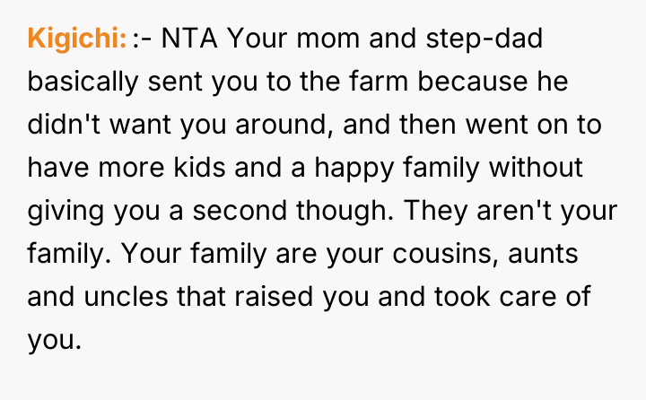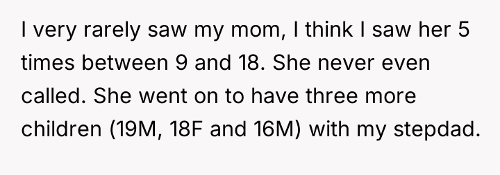 The original poster (OP) is experiencing intense anger and conflict due to their mother and half-siblings resurfacing after years of absence, now demanding financial aid following the step-father's financial mismanagement. The central conflict lies between the OP's justifiable desire to maintain distance and protect the life they built independently, versus the inherited familial obligation or perceived guilt being leveraged against them by the estranged family members.