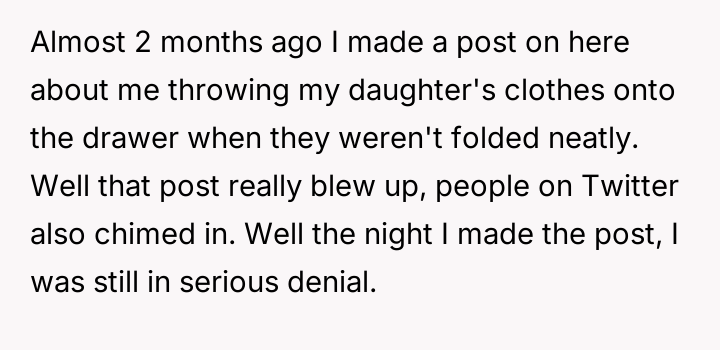 As renowned researcher Dr. Brené Brown explains, “Boundaries are the distance at which I can love you and me simultaneously.” This situation highlights a critical breakdown where the OP’s internal need for order (a potential manifestation of their newly diagnosed OCD) created an excessive, unloving distance between themselves and their daughter, leading to conflict. The OP exhibited intense denial initially, a common response to confronting deeply ingrained behaviors, which only subsided after facing the reality of potential alienation from their children. Seeking psychological support immediately after the incident shows a strong commitment to change, prioritizing relational health over maintaining the compulsive routine. The daughter's temporary removal from the home provided necessary space, and the subsequent family meeting demonstrated accountability, which is vital for rebuilding trust. The OP’s actions—seeking diagnosis, starting therapy, and communicating openly about needing to change—were entirely appropriate and necessary for long-term health. To handle similar situations better, the OP should continue leveraging therapy to understand the root of the control, focusing future efforts not just on stopping specific actions (like folding clothes) but on recognizing the anxiety triggers that drive the compulsive need for perfection and control in all interactions.