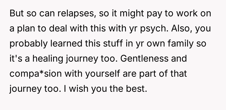 Given the OP's successful first steps toward therapy and open communication, the core question remains: Can deep-seated, clinically diagnosed compulsive behaviors be effectively managed and overcome when the primary motivation is the preservation of crucial family bonds, or will the underlying pattern inevitably resurface?