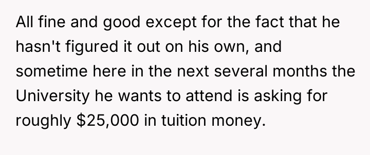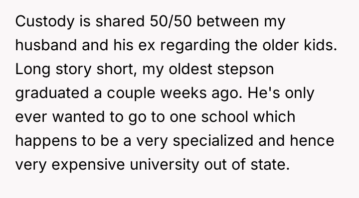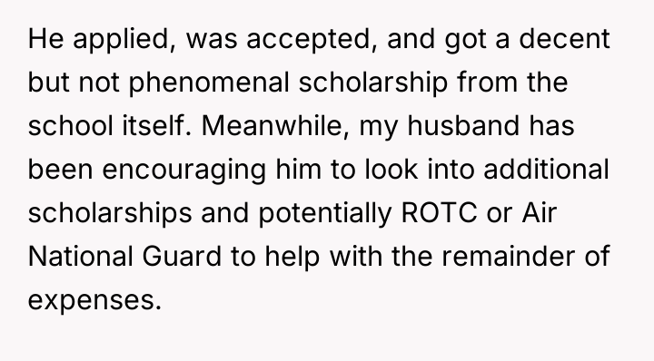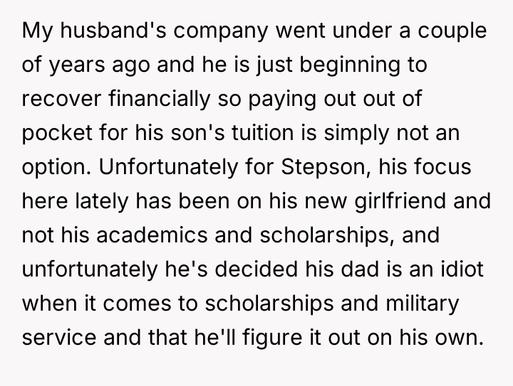 The decision wasn't just about tuition; it was about a son's aspirations clashing with the harsh realities of financial limitations. Would the stepson have to compromise his dream school?