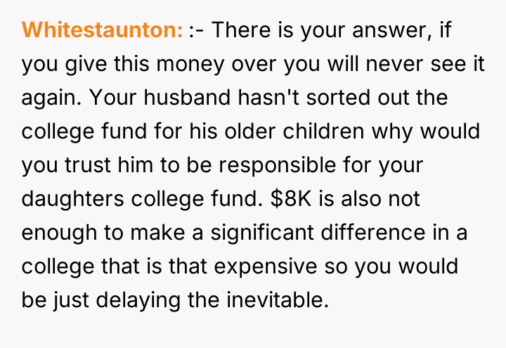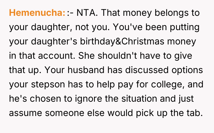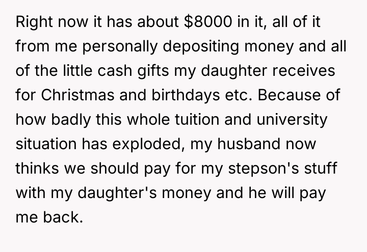 AITA for not giving my 18 yo stepson my 4 yo daughter’s money?