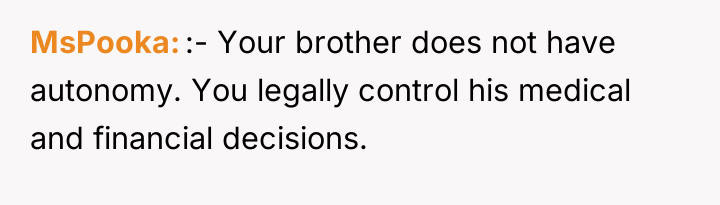 Considering the brother's profound cognitive limitations and documented suffering, was the OP justified in making a necessary, medically advised intervention to improve daily life, or did he wrongly bypass established ethical standards regarding consent for permanent physical procedures?