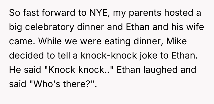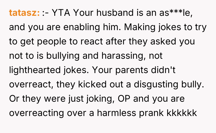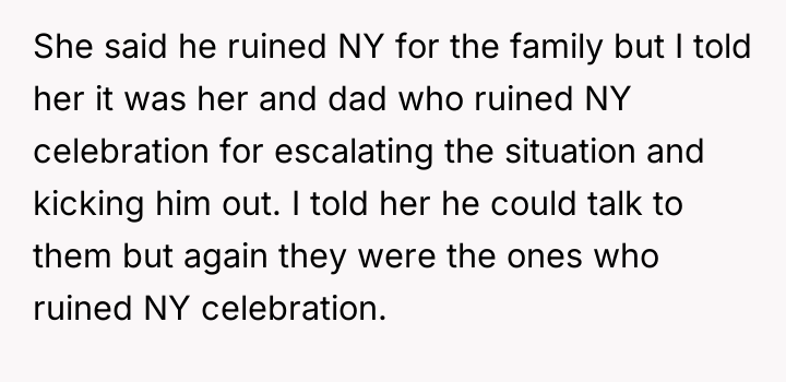 AITA for telling my parents that they ruined NY celebration after they kicked my husband out over a joke?
