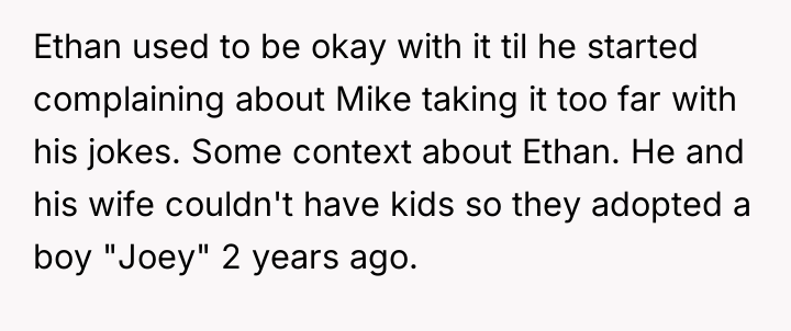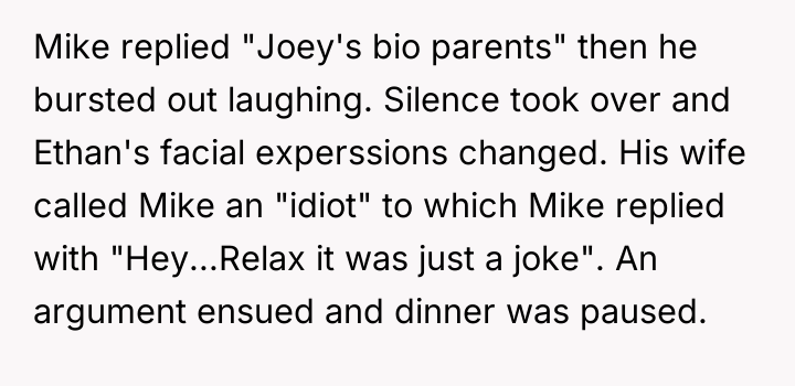 Mike’s relentless humor, meant to entertain, slowly began to unravel the fragile peace within the family. What started as playful banter with Ethan about his adopted son, Joey, crossed an invisible line, turning laughter into discomfort and exposing deep wounds that no joke could heal.