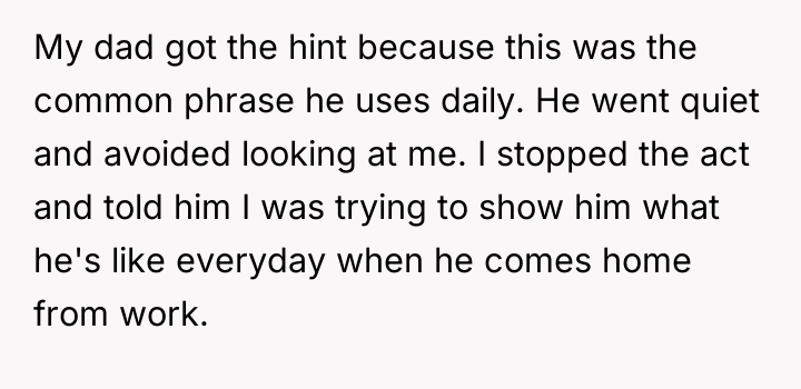 AITA for literally showing my dad how he behaves everyday when he gets home from work?