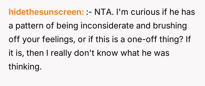 As renowned family therapist Dr. John Gottman explains, 'The single most important thing you can do to increase your relationship satisfaction is to make deposits in the emotional bank account.' In this scenario, the boyfriend made a significant withdrawal by drastically altering the OP’s planned event without consultation, effectively prioritizing his immediate social comfort over her established needs and expressed desires for her own celebration.