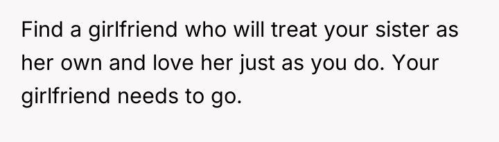The situation involves a clear conflict between the OP’s role as a temporary guardian/older sibling figure and their role as a romantic partner. The girlfriend's comment about a 12-year-old's body is fundamentally inappropriate and crosses a significant ethical boundary, regardless of the relationship dynamic with the OP. The OP’s instinctive reaction to defend the vulnerable party (the sister) aligns with principles of protective caregiving. The extreme reaction ("I saw red") suggests a profound emotional investment in the sister's well-being, compounded by the OP's unique history of raising and guiding her.