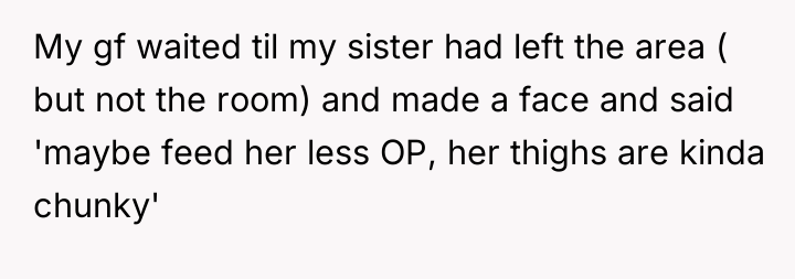 AITA for telling my girlfriend to shut the f**k up after she insulted my sisters thighs?