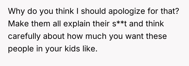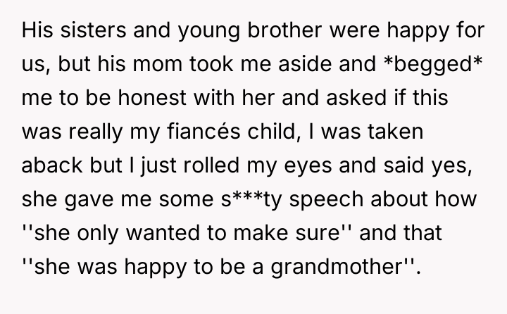 The OP's action, while emotionally charged, was appropriate in that it refused to quietly accept the insult or the implication about her child. The constructive path forward involves the fiancé taking definitive, unified action with the OP to address this behavior. Future interactions require the fiancé to set a clear, non-negotiable boundary: any future comments questioning the OP’s character or the legitimacy of their child will result in immediate removal from family gatherings until respect is demonstrated.