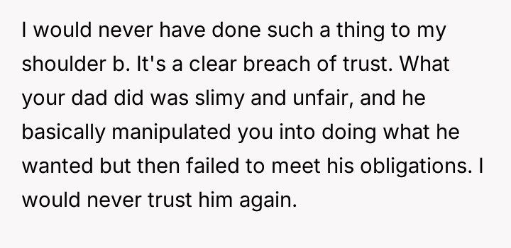 AITA for refusing to forgive my Dad for breaking our deal?