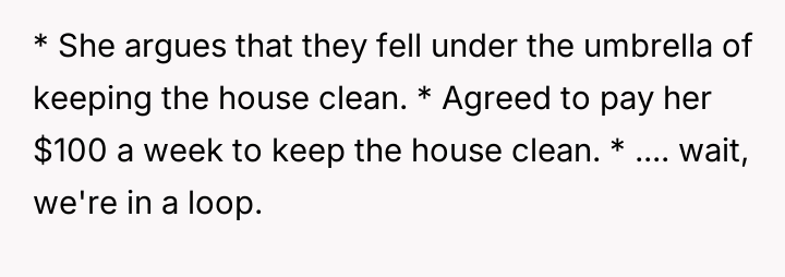 As renowned researcher Dr. Brené Brown explains, “Boundaries are the distance at which I can love you and me simultaneously.” This situation highlights a significant failure in establishing and maintaining clear boundaries regarding both financial exchange and the scope of domestic responsibility within a family context.