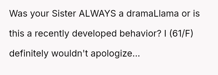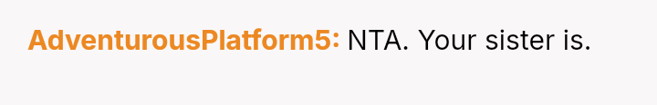 Now, the sister is sending long messages claiming the narrator is the sole problem (AH), leaving the narrator angry and unsure how to proceed.