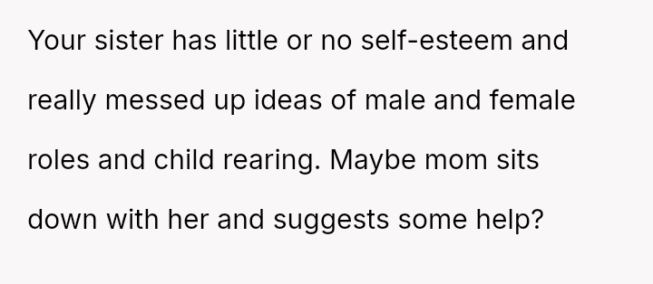 The original poster (OP) finds herself in a conflict stemming from her sister's unso***ited and harsh judgment regarding her choices as a working mother and her focus on appearance.