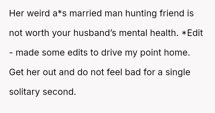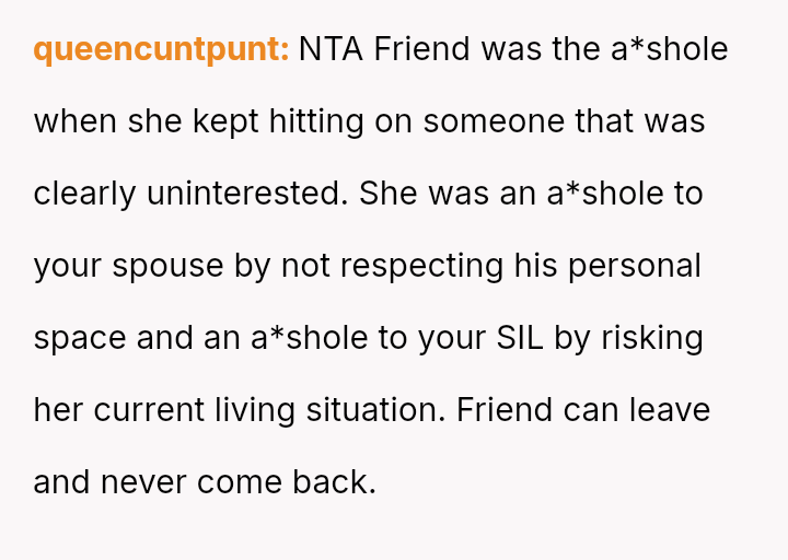 Given the clear boundary v***ations by the guest and the resulting marital distress, was setting a firm boundary by banning the friend justified, even if it meant damaging the relationship with the SIL?