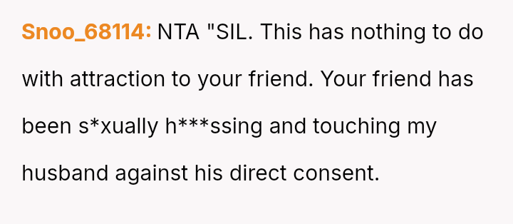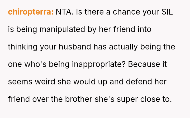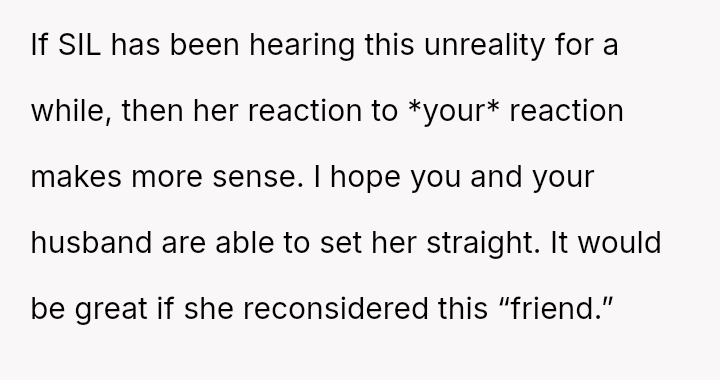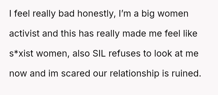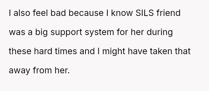 While upholding marital boundaries made them and their husband feel safe, their actions resulted in severe distress for their sister-in-law (SIL) and a potential rupture in their relationship with her.