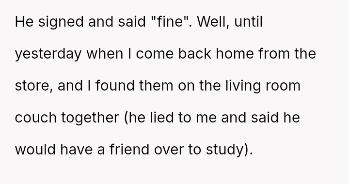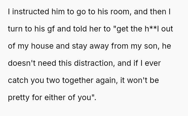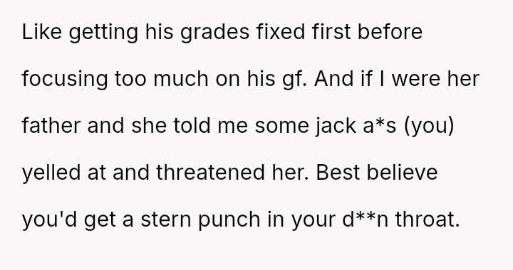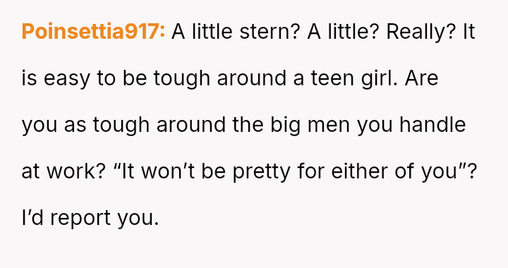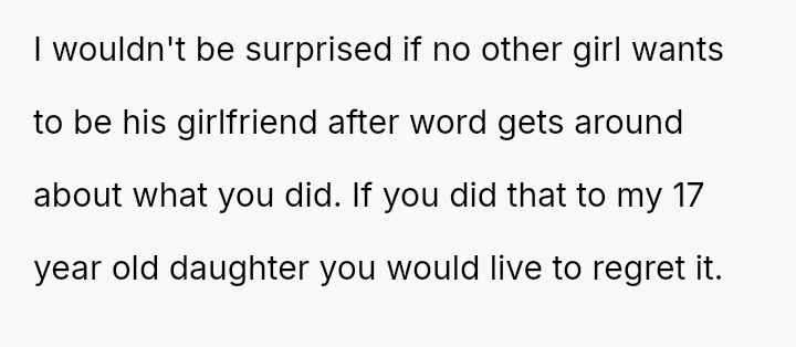 His reaction involved a strict ultimatum followed by an aggressive confrontation when the boundary was crossed, leading to significant emotional distress for the girlfriend and subsequent intervention from extended family who believe the father is being overly harsh.