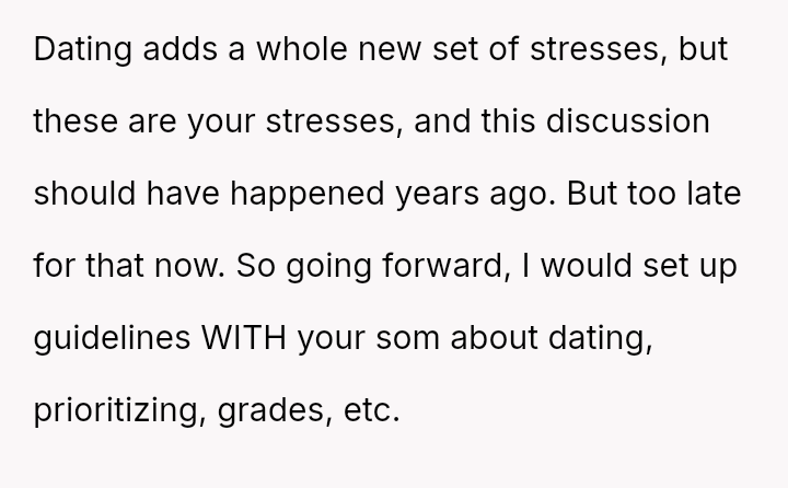 Should a parent prioritize immediate relationship restrictions to enforce academic standards, even if it results in severe conflict and alienates the teenager, or is there a more effective way to mentor a developing young man through balancing personal life with serious responsibilities?