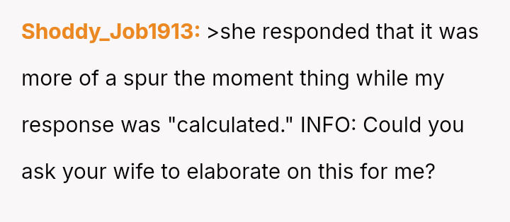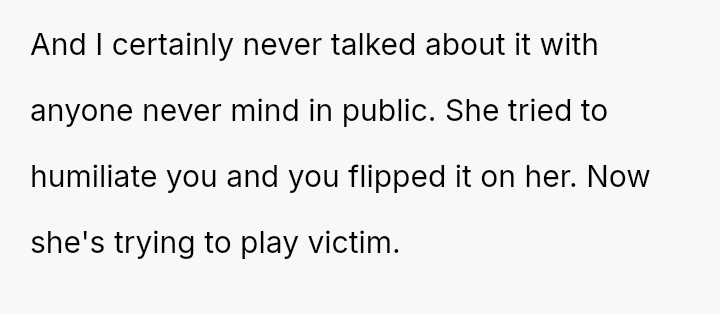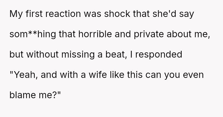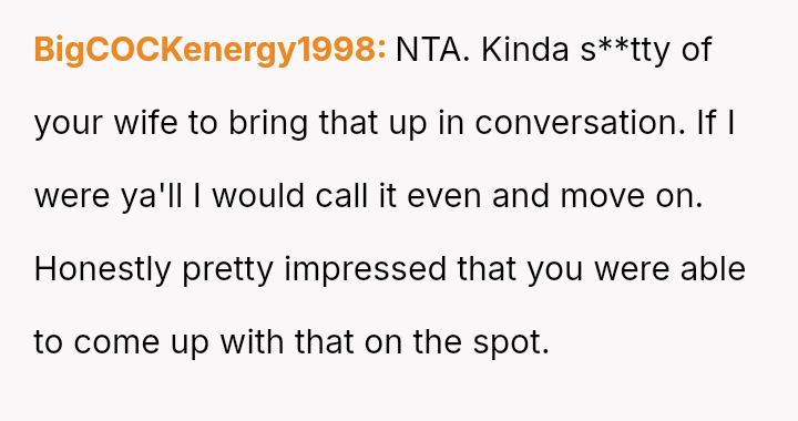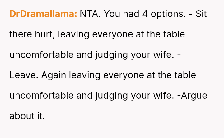 Given that both partners made highly sensitive personal attacks in a public setting, is the wife's reaction to the OP's retort justified, or did the OP's defense rightly mirror the severity of the initial public humiliation inflicted upon him?