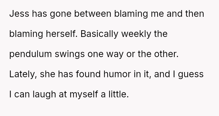 His wife Jess, caught in the turbulent crossfire of blame and vulnerability, oscillates between frustration and self-doubt, trying to navigate the storm that threatens to pull them apart.