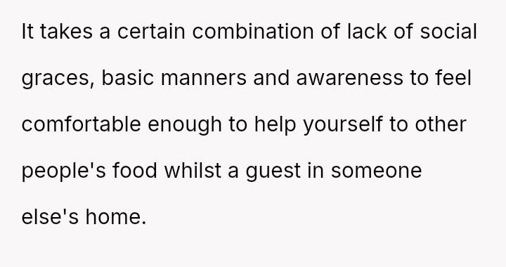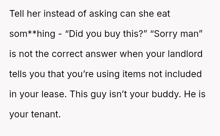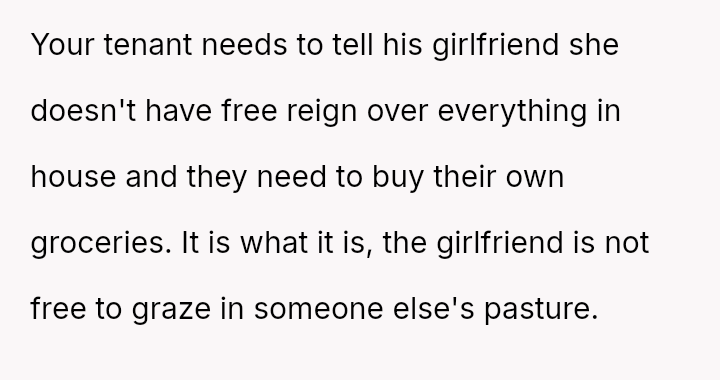 The debate centers on whether shared living arrangements imply an unstated right for a tenant's guest to consume the owner's resources.