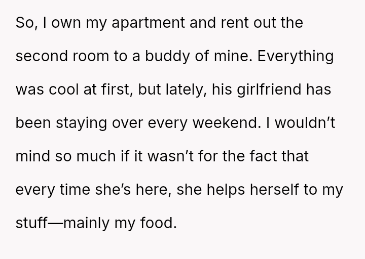 He thought sharing a roof with a friend would be simple, a place of mutual respect and trust. But as weekends rolled in, his patience wore thin watching his carefully prepared food vanish, taken without a word by his roommate’s girlfriend.