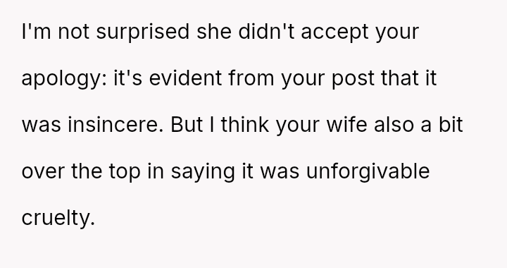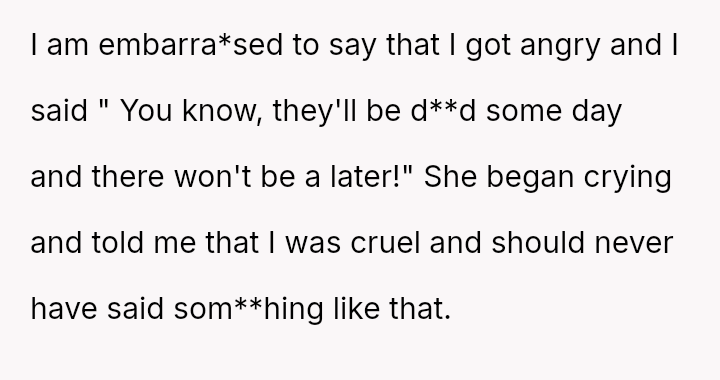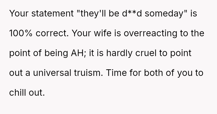 This emotional weight has caused him to push his wife aggressively on the issue, culminating in a highly painful confrontation where he invoked their mortality, damaging the otherwise strong foundation of their marriage.