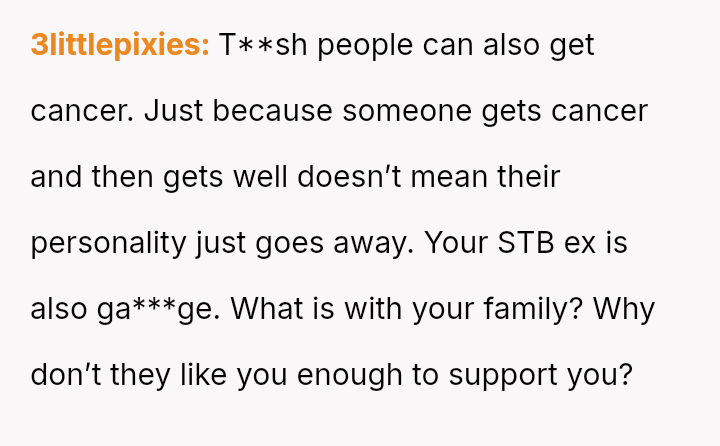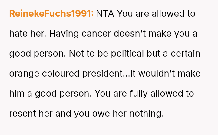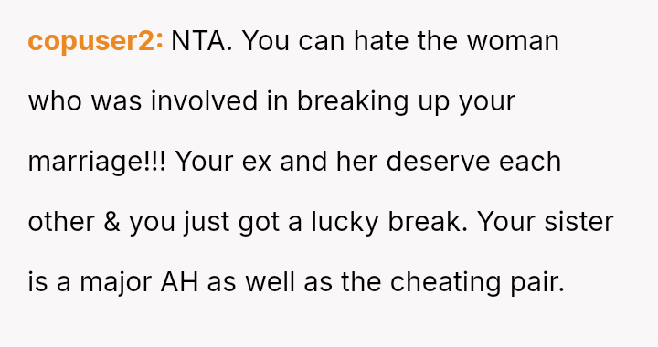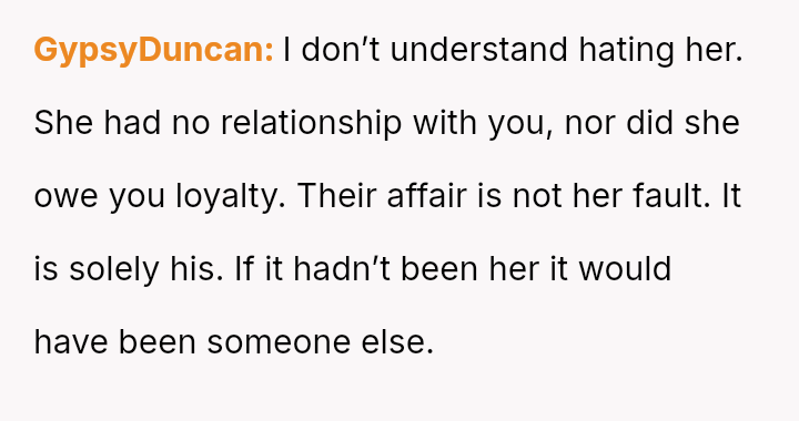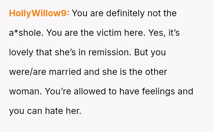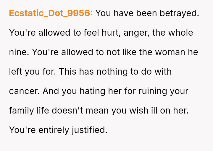Given the profound emotional impact of the situation, is it appropriate or acceptable for the OP to feel intense personal hatred toward the third party, even while wishing her well health-wise, especially when facing dismissal of her pain from her own family members?