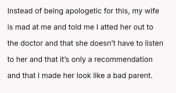 While the OP acted to protect the infant's health by telling the doctor the truth, his subsequent angry reaction and verbal insults have escalated the domestic tension, leaving him questioning his own communication style.