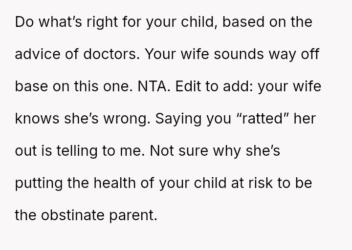The core debate remains whether immediate, strong emotional confrontation is acceptable when a child's health is at risk, versus prioritizing calm communication even when faced with willful disregard for expert medical guidance.