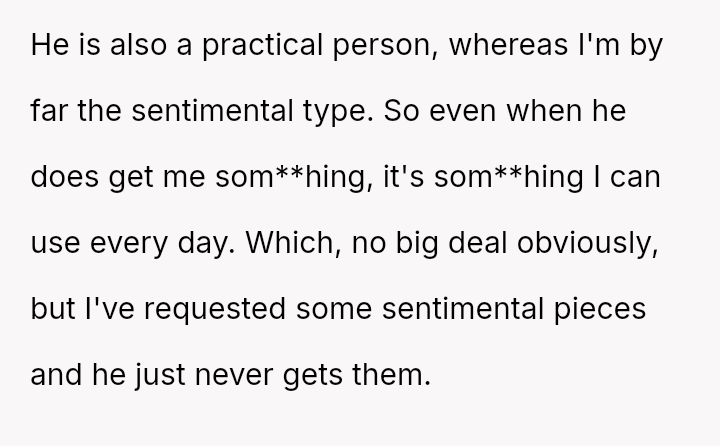 The original poster (OP) is caught between her husband's extreme frugality and her son's deeply sentimental gesture intended to compensate for the husband's lack of thoughtful gift-giving.