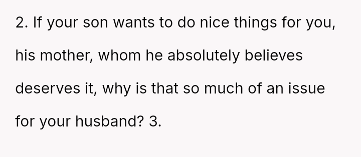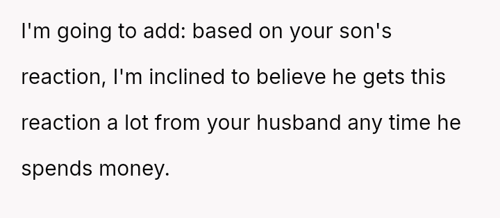 Given the husband's strong reaction to perceived public humiliation versus the son's successful attempt to provide sentimental value, the core question remains: Is it justifiable for an adult child to actively challenge a parent's financial habits in order to provide a sentimental gift the other parent has repeatedly failed to give, especially when that gift is well-received by the recipient?